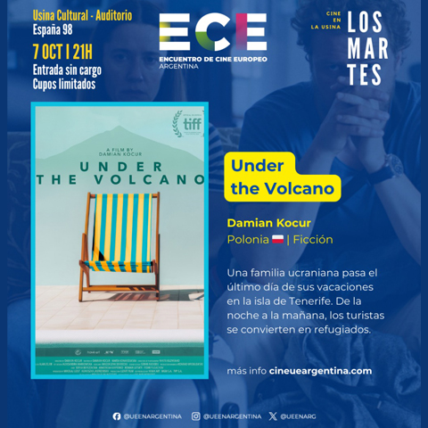 El martes 7, a las 19 hs, se proyectará «Under The Volcano», película proveniente de Polonia, dirigida por Damian Kocur. Sinopsis: Una familia ucraniana pasa el último día de sus vacaciones en la isla de Tenerife. De la noche a la mañana, los turistas se convierten en refugiados.